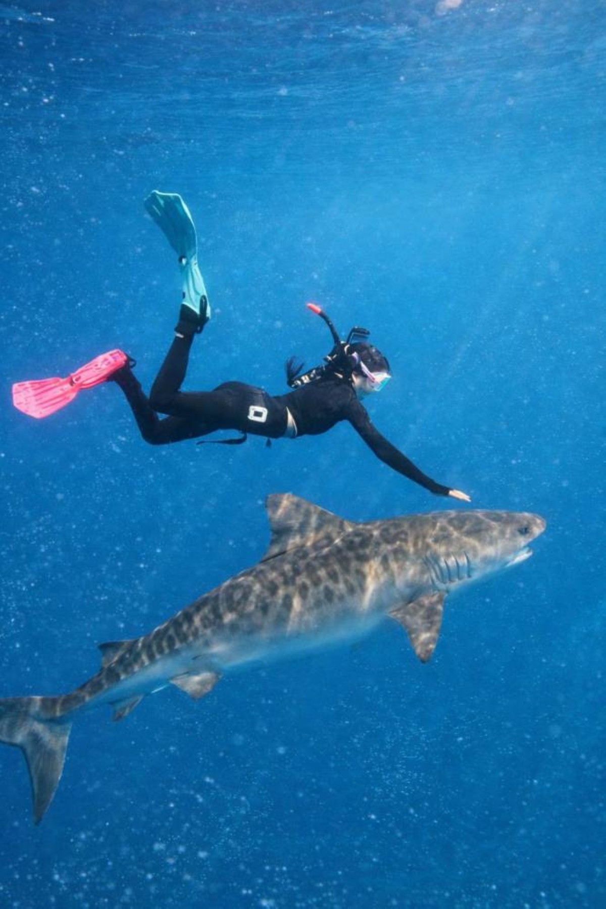 الغواصة منتهى الشحي فتحت قلبها لـ«البيان» قائلة: أنا متخصصة في الغوص مع أشرس أنواع أسماك القرش، خلال أربعة الأشهر الأولى من العام الحالي تمكنت من الغوص مع أكثر من 13 نوعاً مختلفاً في جولة قمت بها حول العالم، من ضمنها قرش التايقر وقرش الثور وأنواع أخرى معروفة بقوتها وهيبتها وشراستها في البحار والمحيطات، وأعتقد أن كل رحلة غوص كانت مختلفة عن الأخرى، وكل تجربة كانت تحمل طابعاً خاصاً بها لا يتكرر.