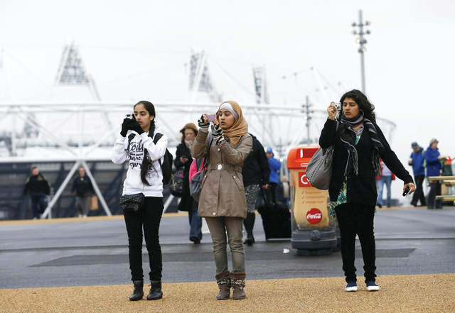 ارتفاع الحمى الاولمبية« رويترز»مع قرب صافرة انطلاق الألعاب الأولمبية 2012 فى لندن بدأت وفود الزوار فى التزايد لمتابعة سير العمل استعداداً لاستضافة الحدث الرياضى الأكبر في العالم ومنهم هذه المجموعة من السياح تلتقط الصور التذكارية للقرية الاولمبية.