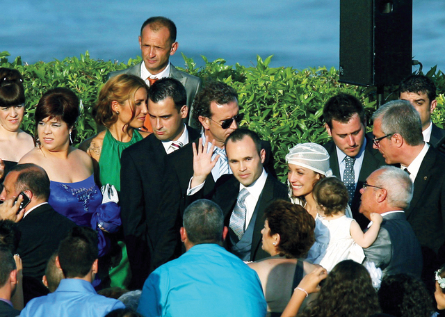اجتمع نجوم كرة القدم الأسبانية اول من امس في حفل زفاف لاعب خط الوسط أندريس إنييستا ، بعد أسبوع واحد من تتويج المنتخب الأسباني بلقب كأس الأمم الأوروبية شهد الحفل حضور نحو 700 مدعو من بينهم زملاء إنييستا بفريق برشلونة والمنتخب الأسبانى وأقيم حفل الزفاف في قلعة "كاستيل دي تاماريت" بمقاطعة تاراجونا جنوب مدينة برشلونة .