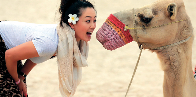 حوار طريفوكالة غيتيحضرت نجمة الغولف الأميركية ميشيل وي للمشاركة في بطولة اوميغا دبي ديزرت ماسترز للغولف التي تنطلق غدا. وزارت ميشيل شاطئ المنتجع خلال فترة الراحة بعد التمرينات وجمعتها هذه اللقطة الطريفة مع أحد الجمال المخصصة لضيوف المنتجع .