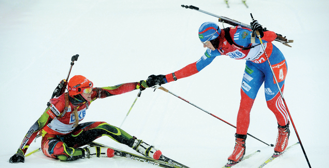 سقطت المتزلجة التشيكية غابرييلا سوكالون فرحاً بإحرازها المركز الأول في بطولة العالم للتزلج على الجليد. وكانت منافستها الروسية أولغا أول من قدم لها التهنئة رغم فوزها عليها وحصولها على المركز الثاني والميدالية الفضية بينما أحرزت النرويجية بيرغر المركز الثالث والبرونزية.