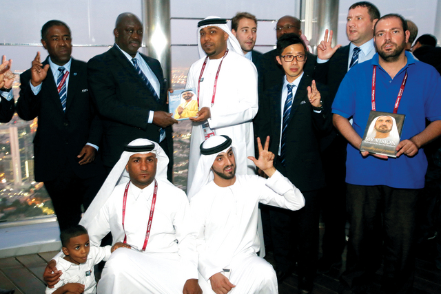 صعد أعضاء الاتحاد الدولي لكرة القدم «فيفا» أمس إلى قمة برج خليفة خلال جولة ترفيهية نظمتها مجموعة دبي للتعريف بمعالم دبي السياحية، وضم وفد الـ"فيفا" كمارا ألامي كابيلي رئيس لجنة الاتحاد الدولي لكرة القدم لمجموعة دبي، .