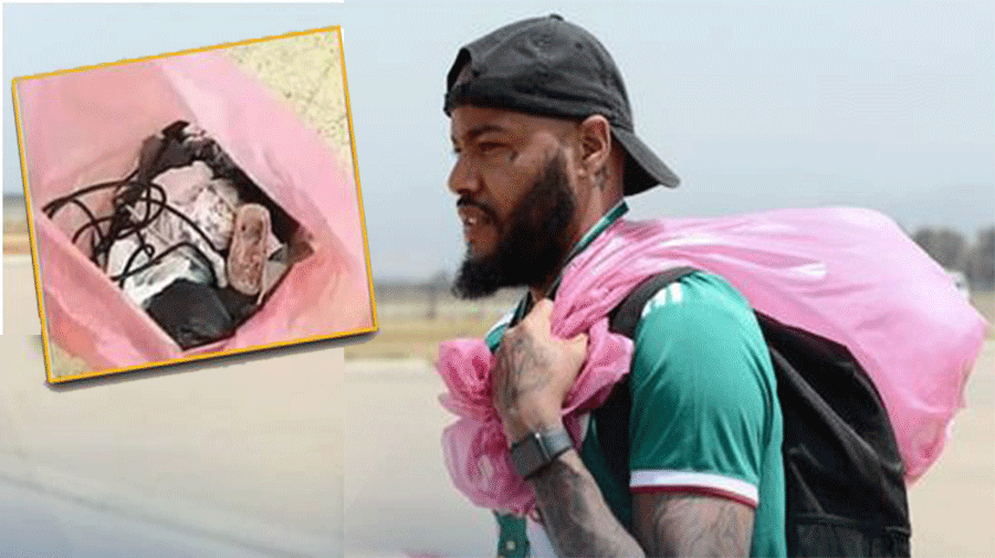ولفت مبولحي الأنظار بعد العودة من مصر إلى الجزائر وهو يحمل كيسا بلاستيكيا بطريقة غريبة، ليتساءل كل المُتابعين عما يحتويه بالداخل.