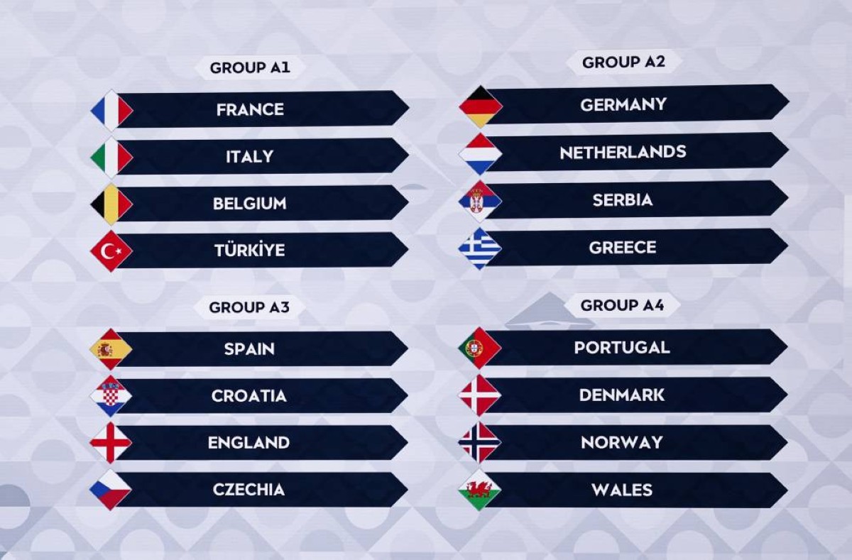 أجريت الخميس قرعة مرحلة المجموعات ببطولة دوري أمم أوروبا لكرة القدم، في العاصمة البلجيكية بروكسل، على هامش اجتماعات الاتحاد الأوروبي لكرة القدم (يويفا).