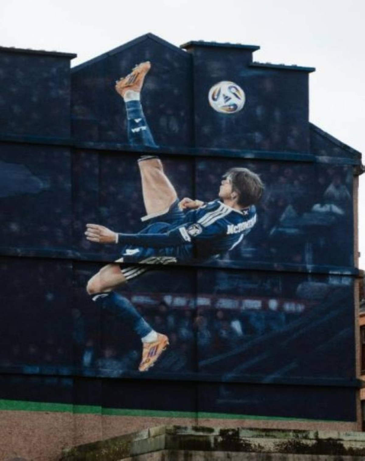 في شارع سومرفيل درايف، الطريق الذي يقود الجماهير إلى قلب الكرة الأسكتلندية هامبدن بارك، لم يعد المارة يرفعون رؤوسهم نحو السماء بسبب المطر، بل بسبب هدف. وهناك على واجهة مبنى بارتفاع عشرة أمتار في قلب غلاسكو تحولت ركلة مقصية مذهلة إلى جدارية أسطورية، بطلها سكوت ماكتوميناي.