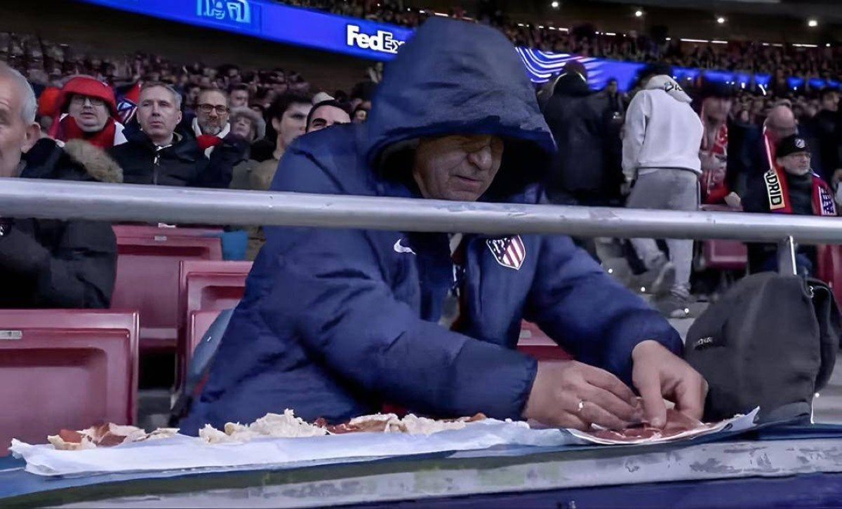 وفي الوقت بدل الضائع من الشوط الأول، التقطت عدسات البث مشجع أتلتيكو وهو يتصرف بهدوء وثقة لافتة، إذ بدأ بإعداد وليمة ضخمة من السندويتشات وسط المدرجات وكأنه في نزهة خاصة، بعدما اطمأن لتفوق فريقه العريض، حيث كانت النتيجة تشير إلى تقدم أصحاب الأرض 4–1، في مشهد خطف الأضواء وأشعل مواقع التواصل الاجتماعي.