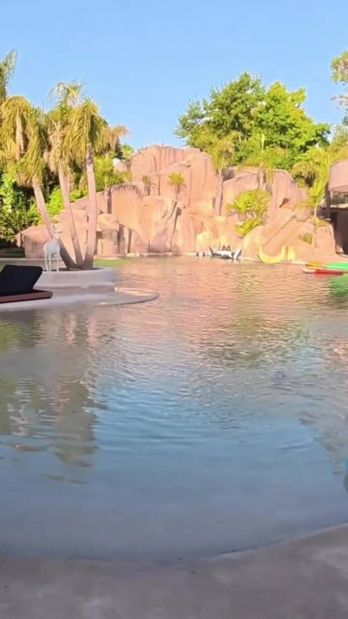 وحديقة الحيوان المائية، وهي عبارة عن مسبح خارجي ضخم محاط بالصخور والأشجار الطبيعية، مزود بمنزلقات مائية عملاقة وقلعة نطاطة، وحتى محل لبيع الآيس كريم.