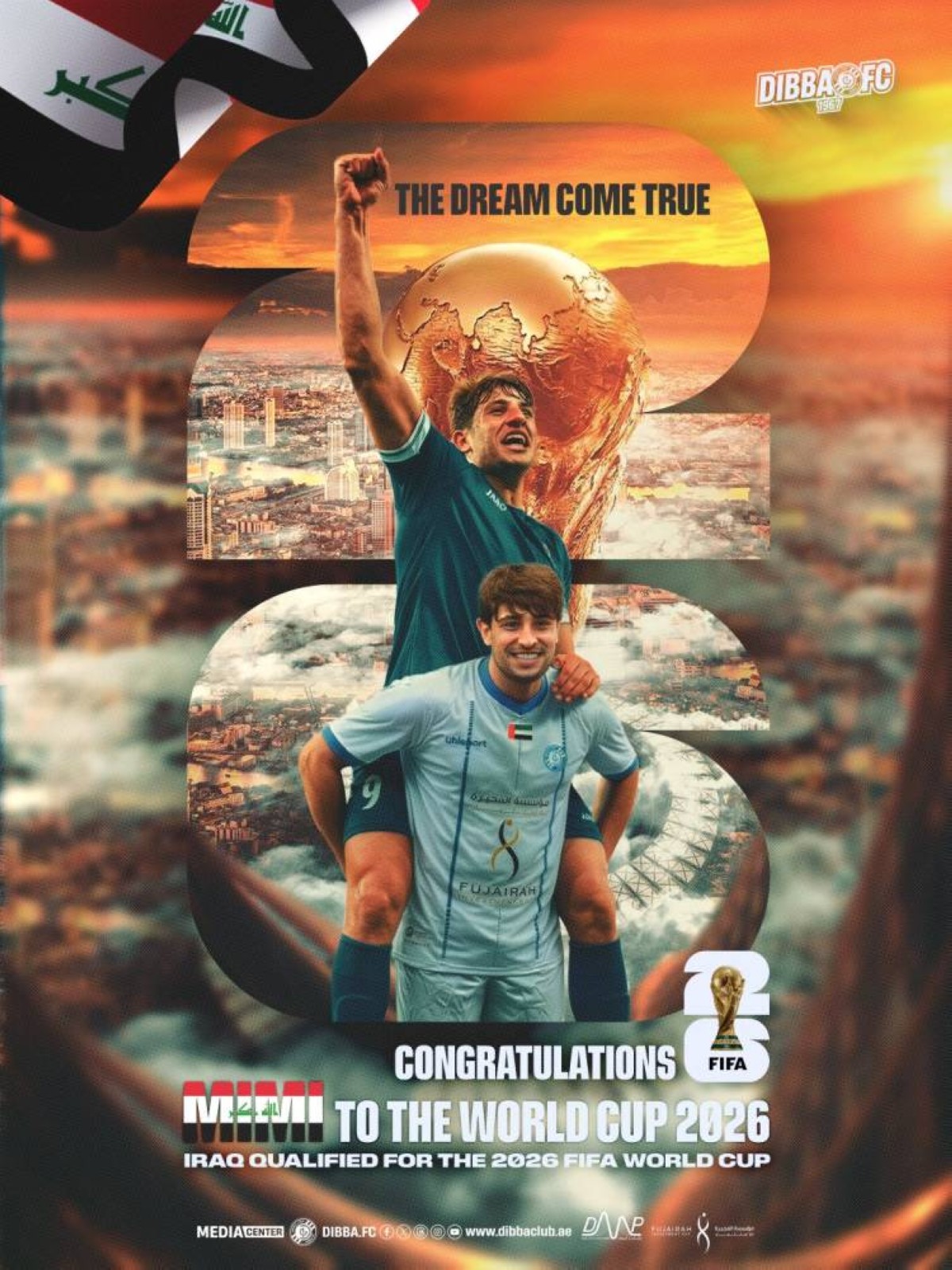 في لحظة تاريخية طال انتظارها تحقق حلم جماهير الكرة العراقية ببلوغ نهائيات كأس العالم 2026، ليكتب المنتخب العراقي صفحة جديدة في سجله الكروي، عنوانها الإصرار والعزيمة. هذا الإنجاز لم يكن وليد الصدفة، بل جاء ثمرة عمل جماعي طويل، كان أحد أبرز نجومه المهاجم المتألق مهند علي، المعروف جماهيرياً بـ«ميمي»، هداف فريق دبا الفجيرة، الذي احتفل بتأهل أسود الرافدين ونجمه ميمي على طريقته الخاصة، وذلك عبر منصات نادي دبا في مواقع التواصل الاجتماعي، وذلك عقب الفوز اليوم على منتخب بوليفيا بنتيجة 2-1، حيث جاءت التهاني حارة ومليئة بالفخر، وعبّر النادي عن اعتزازه الكبير بلاعبه، الذي رفع اسم العراق عالياً في المحافل الدولية، مؤكداً أن ما قدمه ميمي طوال مشوار التصفيات كان مثالاً للاعب المحترف، الذي يتحمل المسؤولية في أصعب اللحظات.