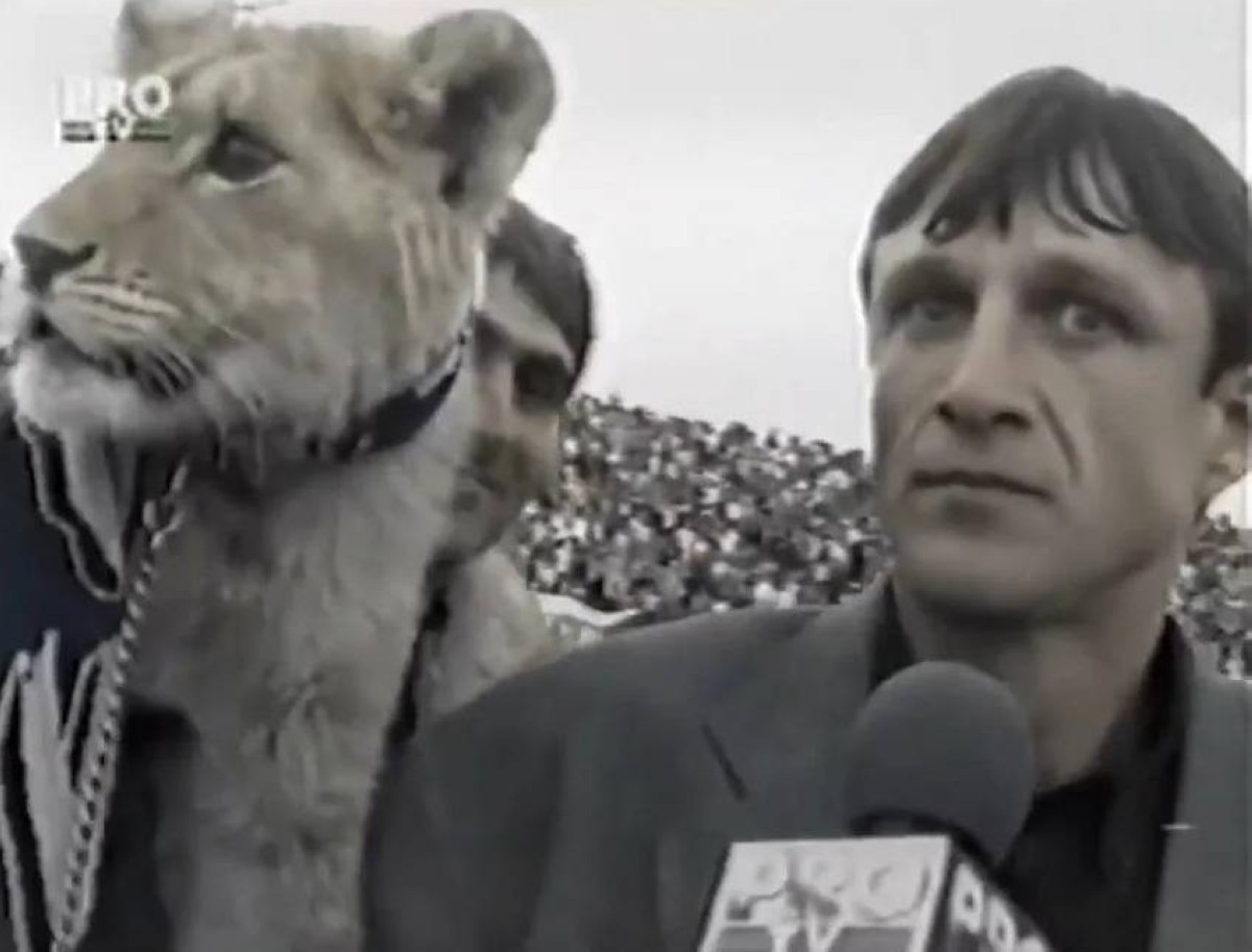 ورغم كل ذلك، تبقى لقطة واحدة تتربع على عرش الجنون الكروي، ففي عام 2000، خلال مباراة في الدوري الروماني، قرر أحد مشجعي يونيفيرسيتاتيا كرايوفا أن يترجم عشقه لشعار ناديه بطريقة لا تخطر على بال، إذ نزل إلى أرضية الملعب مصطحبًا أسدًا حقيقيًا.
