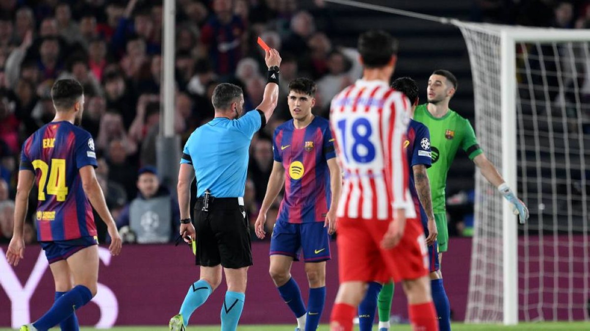 وبدأت أبرز حالات الاعتراض في الشوط الأول، عندما أشهر الحكم البطاقة الحمراء في وجه المدافع الشاب باو كوبارسي، عقب تدخله على جوليانو سيميوني، وهو القرار الذي أجبر برشلونة على استكمال اللقاء بنقص عددي.