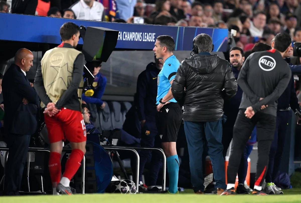تسريب المحادثة.. كواليس ما دار بين الحكم والـ «ڤار» في مباراة برشلونة وأتلتيكو