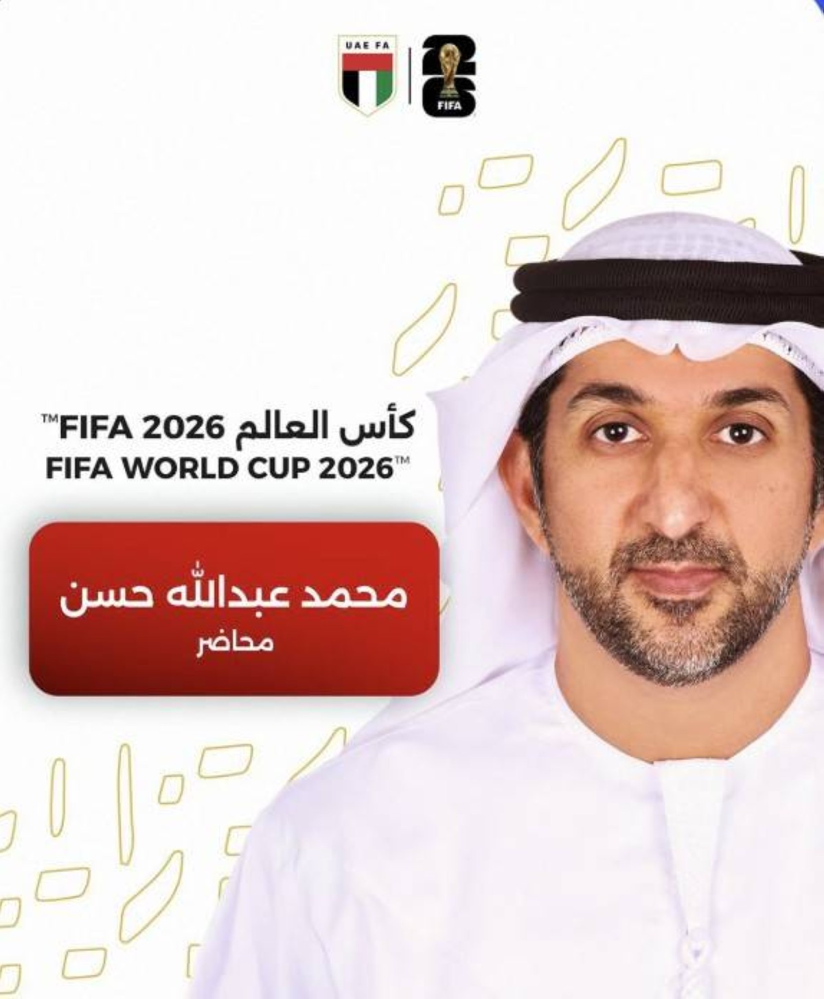 أعلن اتحاد الإمارات لكرة القدم، أن الاتحاد الدولي «فيفا» اختار رسمياً الحكم الدولي السابق محمد عبدالله حسن ضمن محاضري حكام نهائيات كأس العالم 2026. وفي جانب متصل، أسند الاتحاد الآسيوي لكرة القدم إلى طاقم التحكيم الإماراتي المؤلف من الدولي عمر آل علي، والحكم المساعد محمد أحمد يوسف، وحكم الفيديو محمد عبيد خادم، إدارة مباراة السد القطري وفيسيل كوبي الياباني في الدور ربع النهائي لبطولة دوري أبطال آسيا للنخبة.
