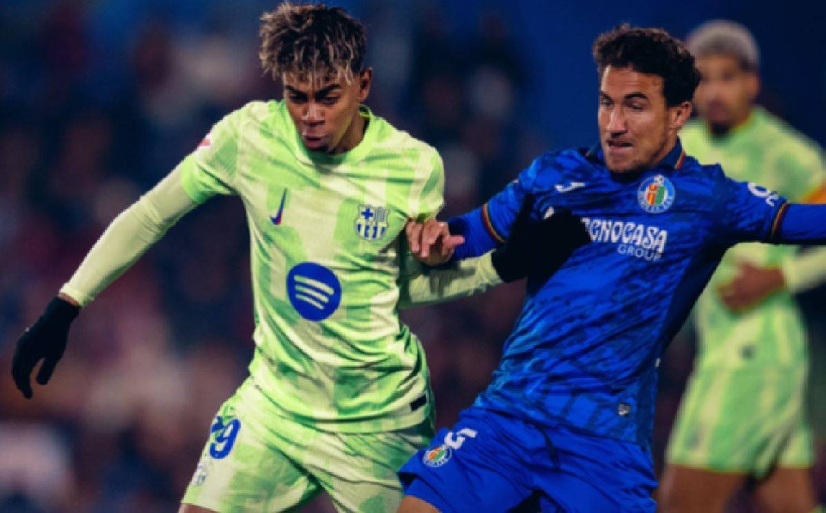وهيمن برشلونة على الكرة لكنه لم يتمكن من صناعة الفرص في ظل أداء قوي من خماسي خط دفاع خيتافي وغياب الأمين جمال عن أفضل مستوياته.