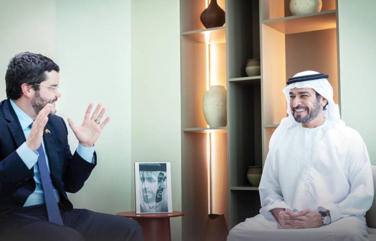 استقبل معالي الشيخ حمدان بن مبارك آل نهيان، رئيس اتحاد الإمارات لكرة القدم، لويس ميغيل ميرلانو هويو، سفير جمهورية كولومبيا لدى الدولة، في مكتبه بالعاصمة أبوظبي.
