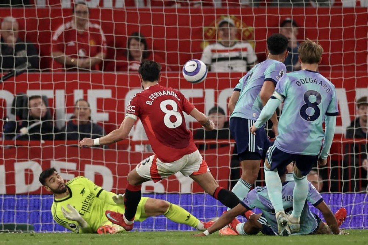 وافتتح البرتغالي برونو فرنانديز التسجيل لمانشستر يونايتد في الدقيقة الثانية من الوقت المحتسب بدلا من الضائع للشوط الأول، فيما أحرز ديكلان رايس هدف التعادل لأرسنال في الدقيقة 74.