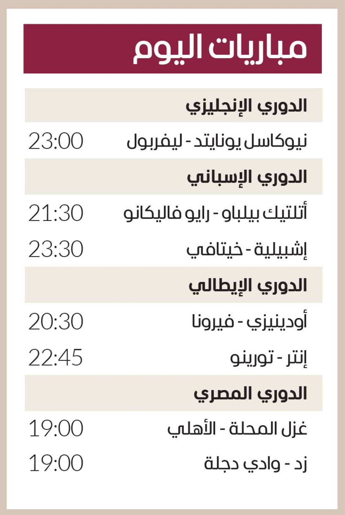 مباريات اليوم