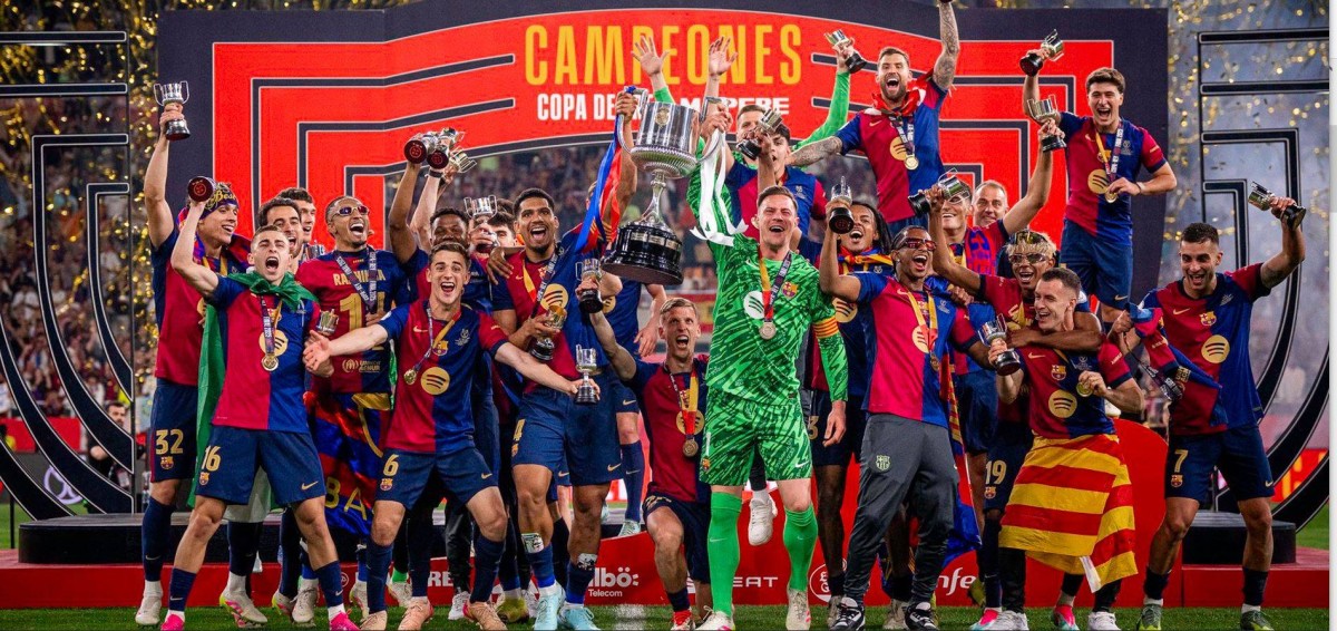 توج فريق برشلونة بلقب كأس ملك إسبانيا لكرة القدم بعد فوز ماراثوني على غريمه الأزلي ريال مدريد بنتيجة 3 / 2 بعد مباراة امتدت لشوطين إضافيين، مساء السبت.