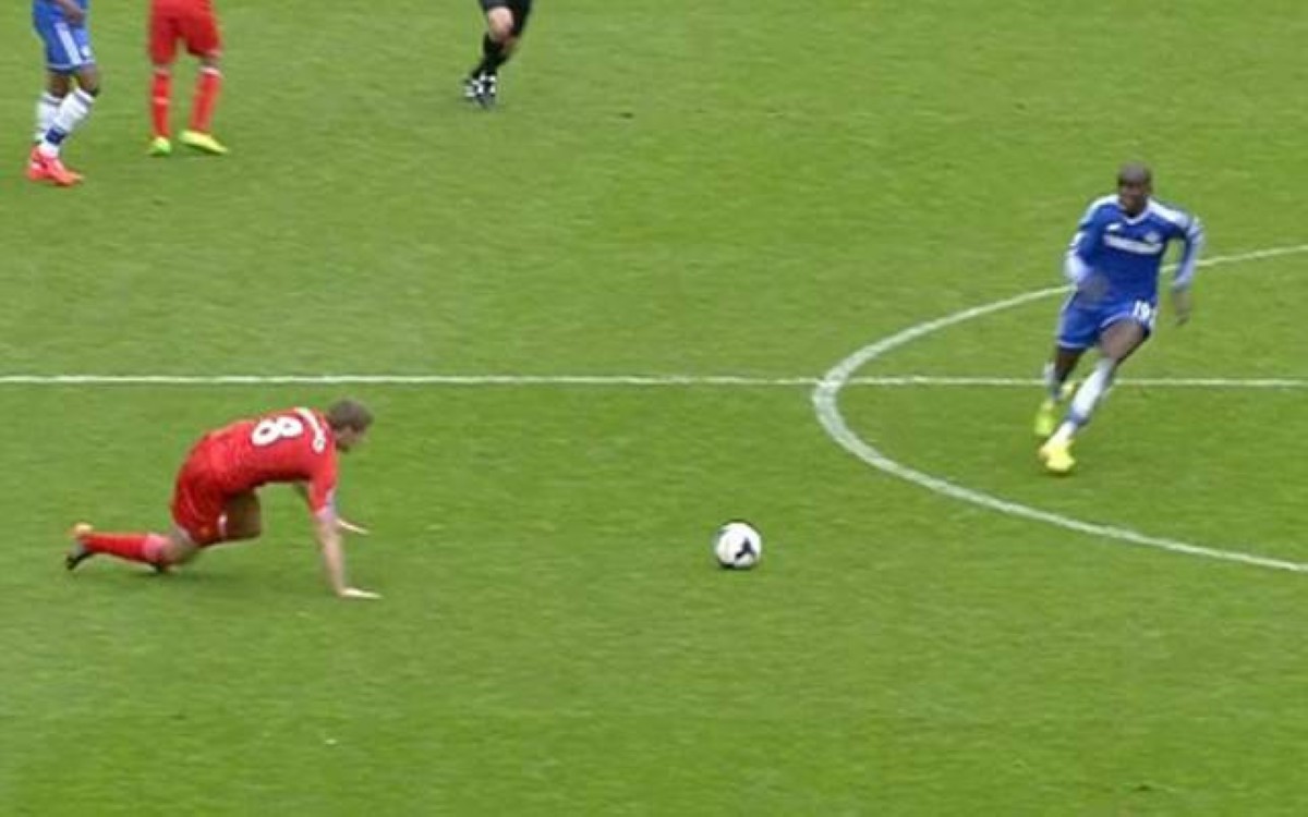 في ذاك اليوم ارتكب جيرارد، خطأ فادحاً في الدقائق الأخيرة من تلكم المباراة ضمن الجولة الـ36 من الدوري الإنجليزي الممتاز موسم 2013/2014، بعدما فقد توازنه وتزحلق وسقط أرضاً استغل تشيلسي ذلك عبر لاعبه ديمبا با وسجل الهدف الأول.