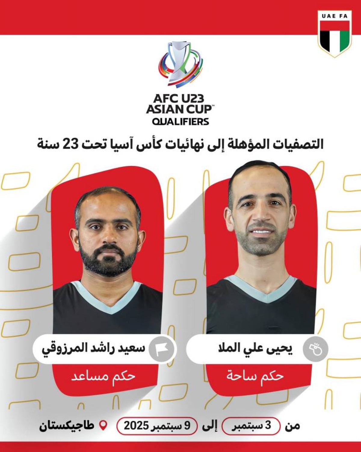 6 من قضاة ملاعب الإمارات يشاركون في تصفيات «آسيا تحت 23 عاماً»