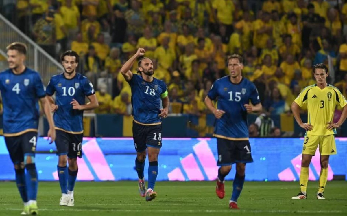 وفي المجموعة الثانية، حققت كوسوفو فوزاً مفاجئاً على السويد في ليوبليانا بهدفين نظيفين، لتحصد 3 نقاط من مباراتين، وتترك منافسها بنقطة واحدة، وجاء كلا الهدفين من هجمات مرتدة سريعة من منطقة الجزاء إلى منطقة الجزاء، وفي وقت متأخر من المباراة، حصل اللاعب البديل ليندون إيميرلاهو على بطاقة حمراء لارتكابه خطأ يستحق الإنذار الثاني، لكن السويد لم تتمكن من استغلال النقص العددي، لتخسر نقاط المباراة كاملة.