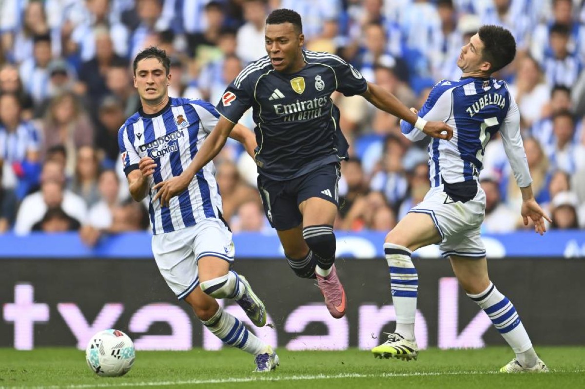 سجل كيليان مبابي هدفاً وصنع هدفاً آخر لزميله أردا جولر ليقود ريال مدريد إلى الفوز 2-1 على مضيفه ريال سوسييداد اليوم السبت، ويواصل الفريق بدايته المثالية في دوري الدرجة الأولى الإسباني لكرة القدم رغم أنه لعب أغلب زمن المباراة بعشرة لاعبين.