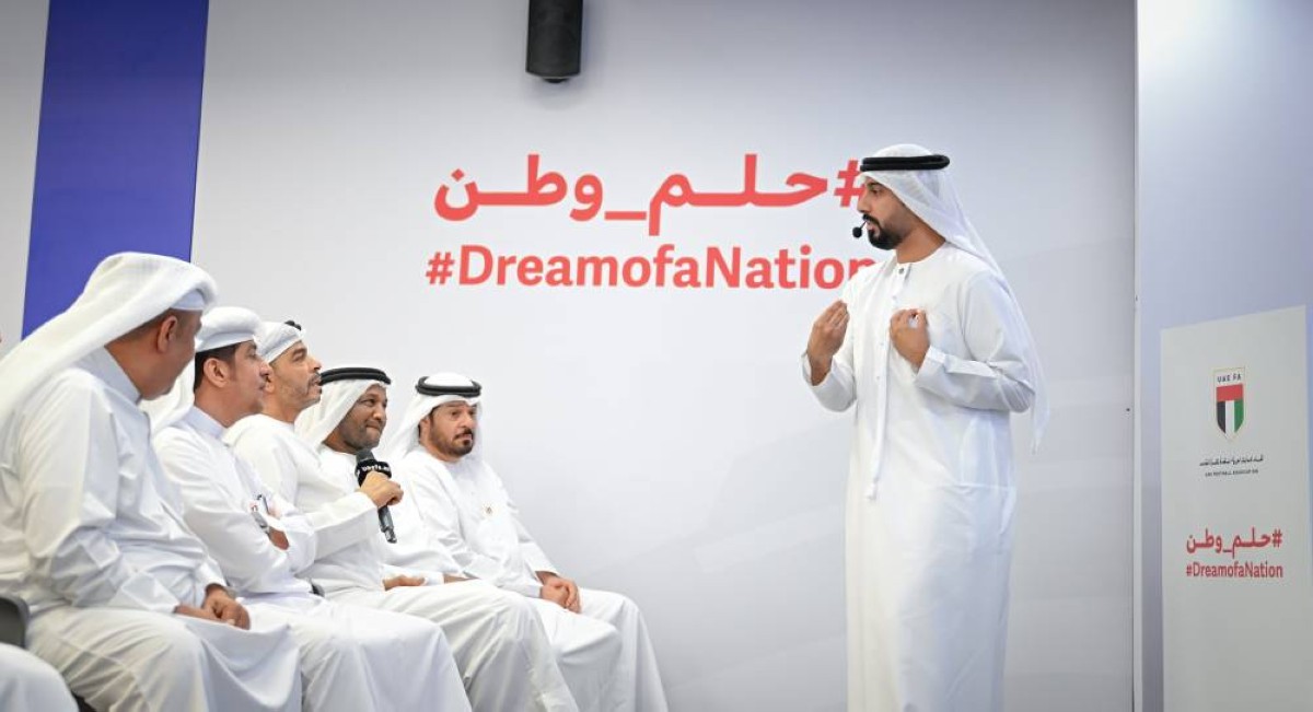 وتم الإعلان عن الحملة المجتمعية خلال اجتماع تنسيقي عُقد اليوم في مقر اتحاد الكرة، بحضور مسؤولي الاتحاد وأعضاء الجهازين الفني والإداري للمنتخب الوطني، وعدد من أساطير الكرة الإماراتية وممثلي الرعاة الرسميين، والشركاء ومديري القنوات الرياضية ورؤساء الأقسام الرياضية في الصحف والمحللين والنقاد الرياضيين وصناع المحتوى.