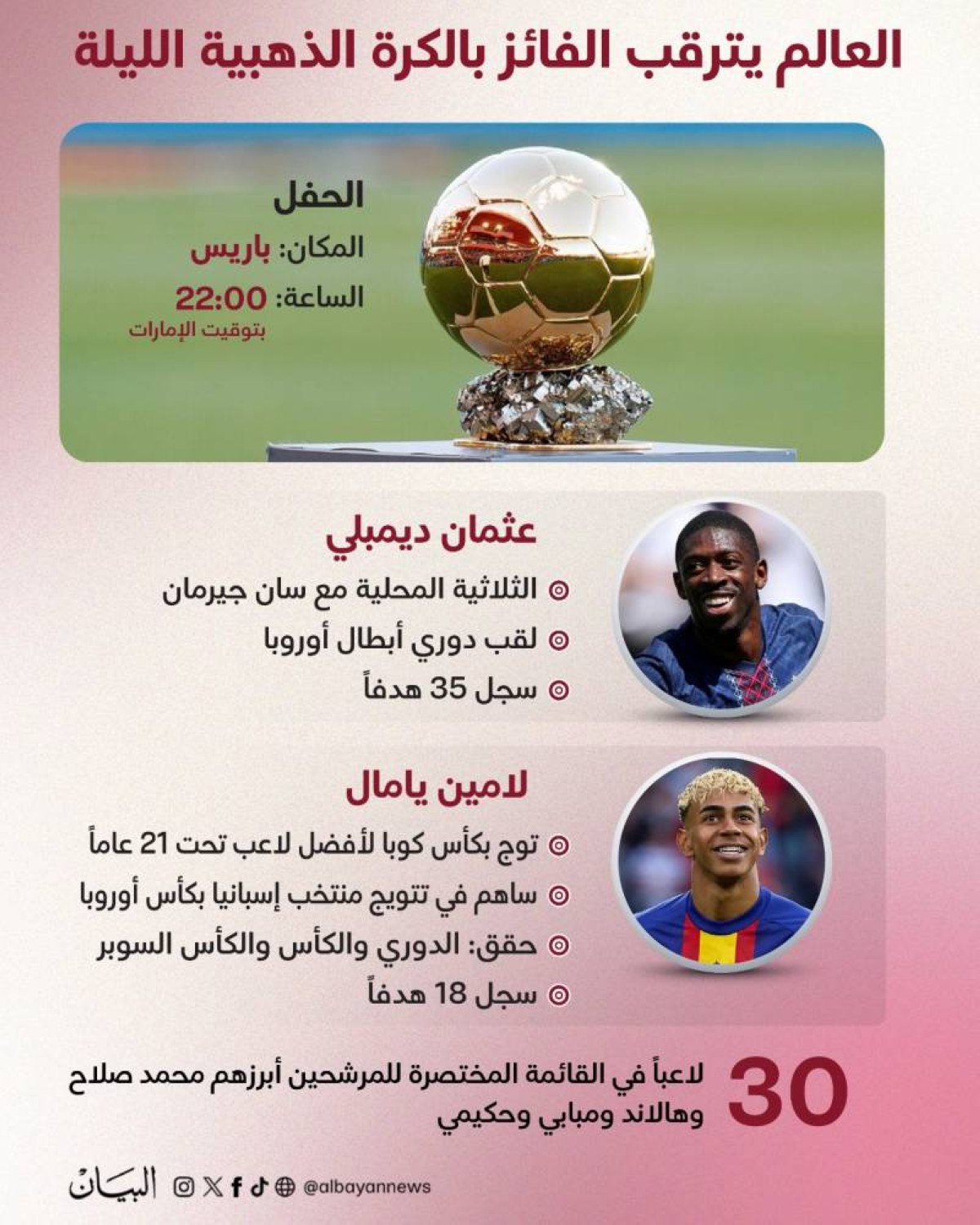 العالم يترقب الآن الفائز بالكرة الذهبية 2025