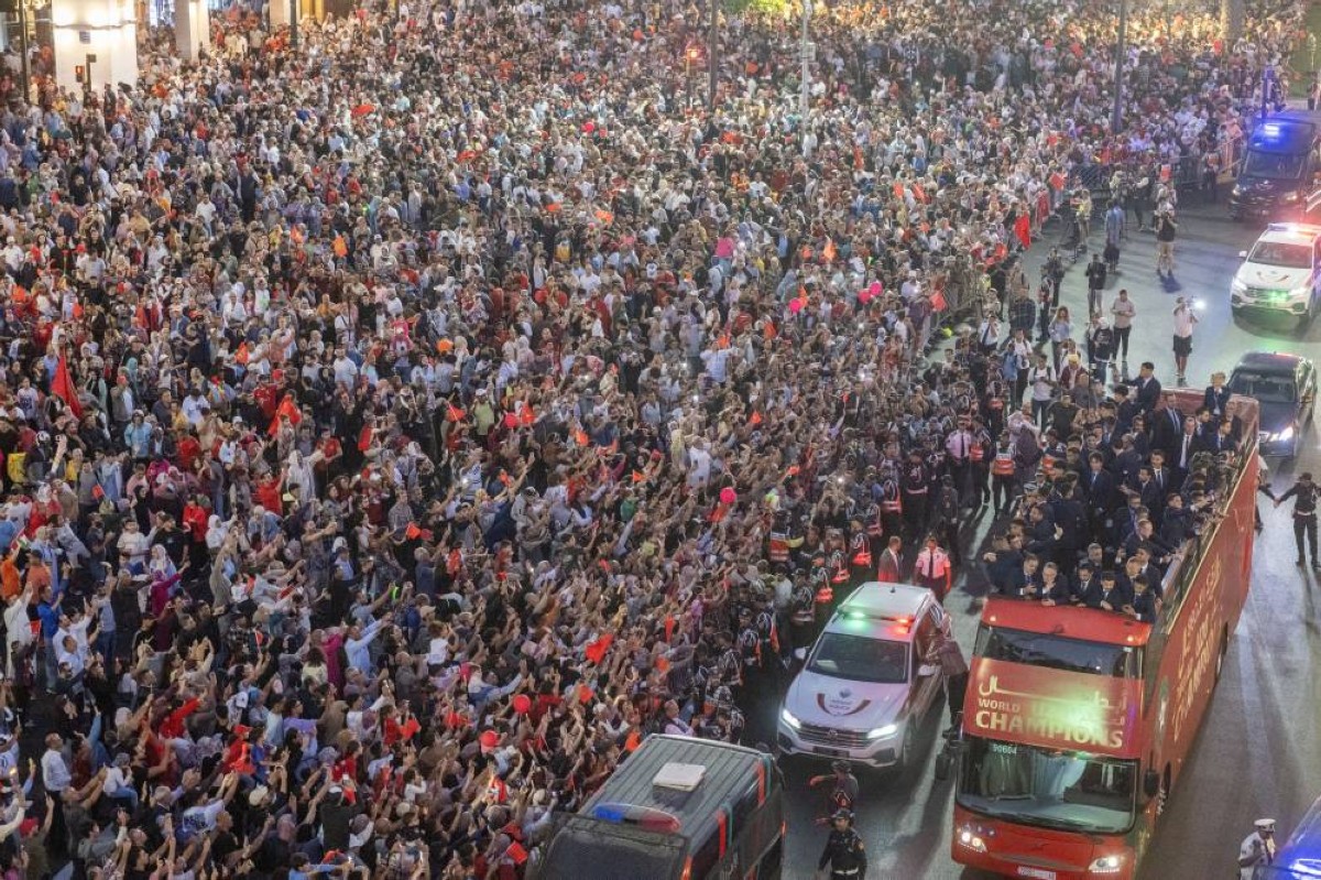 وطاف اللاعبون في حافلة مكشوفة وسط العاصمة الرباط، بعد استقبالهم في القصر الملكي من قبل صاحب السمو الملكي الأمير مولاي الحسن، ولي عهد المملكة المغربية.