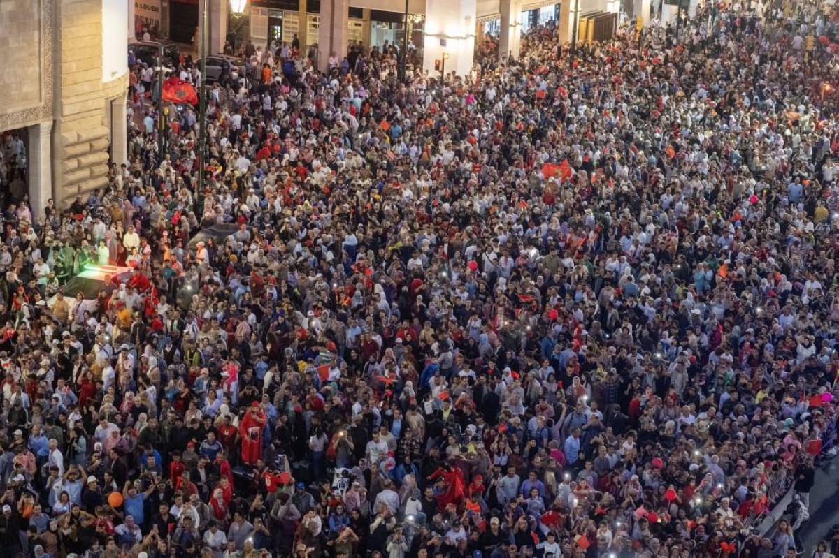 وأطلقت الجماهير، التي ارتدى معظمها قميص الفريق، الألعاب النارية ولوحت بأعلام المغرب ورددت الأهازيج والهتافات ابتهاجاً بالفوز بكأس العالم.