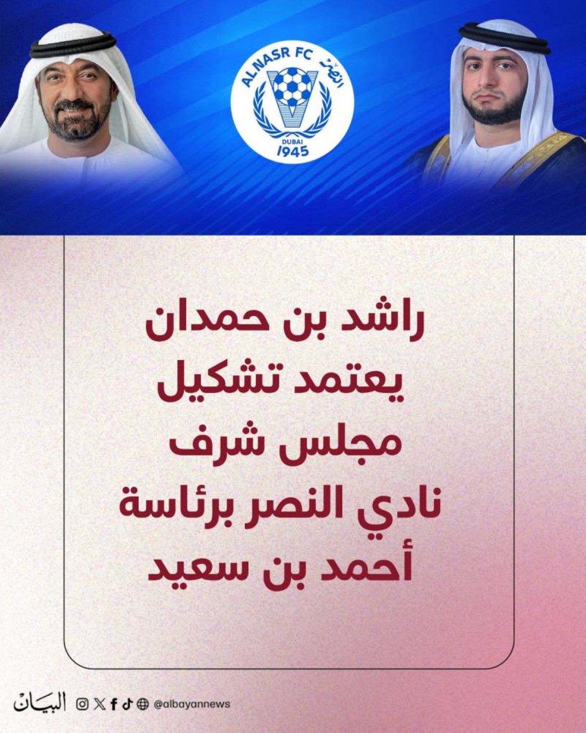 كما اعتمد الشيخ راشد بن حمدان بن راشد آل مكتوم، رئيس نادي النصر الرياضي، قراراً بتعيين منصور رحمة الفلاسي، أميناً عاماً لمجلس الشرف، حيث سيتولى مهام التنسيق العام لأعمال المجلس ومتابعة تنفيذ قراراته، إلى جانب دوره رئيس مجلس إدارة شركة نادي النصر للاستثمار، بما يعزز التكامل بين المنظومتين الإدارية والاستثمارية للنادي.