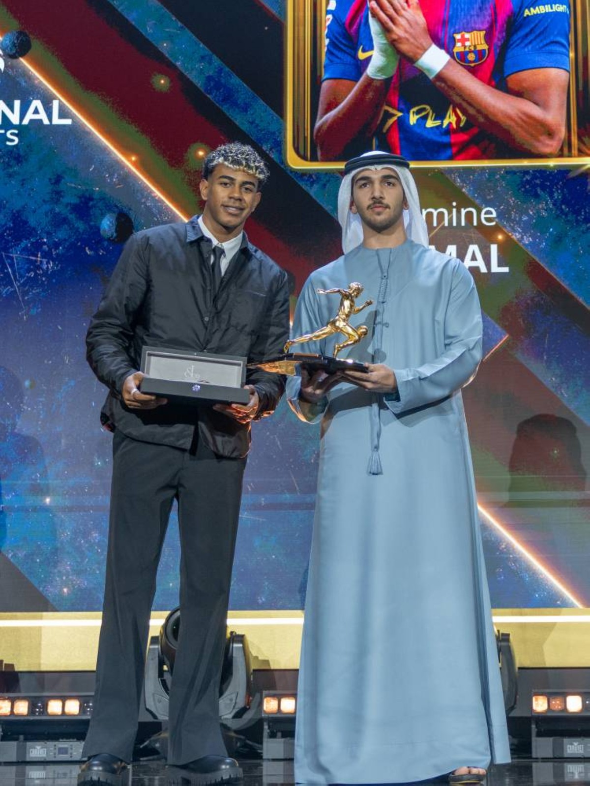 وعلى صعيد كرة القدم النسائية، واصلت أيتانا بونماتي تألقها بحصد جائزة أفضل لاعبة، في حين تُوج نادي برشلونة بجائزة أفضل نادٍ للسيدات. كما خطف النجم الشاب لامين يامال «18 عاماً» الأضواء بعد فوزه بجائزتي أفضل مهاجم، وجائزة مارادونا.