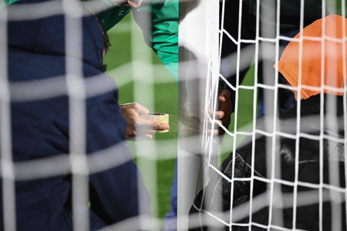 وخلال الفحص الروتيني للمرميين قبل المباراة التي أُقيمت بمدينة فاس، تم اكتشاف تمزق أسفل القائم الأيمن لمرمى موزمبيق، ما استدعى تدخلاً عاجلاً من مسؤولي الملعب لإصلاح الشبكة باستخدام شريط لاصق يحمل شعار الاتحاد الأفريقي لكرة القدم «كاف»، تجنباً لتأجيل اللقاء.