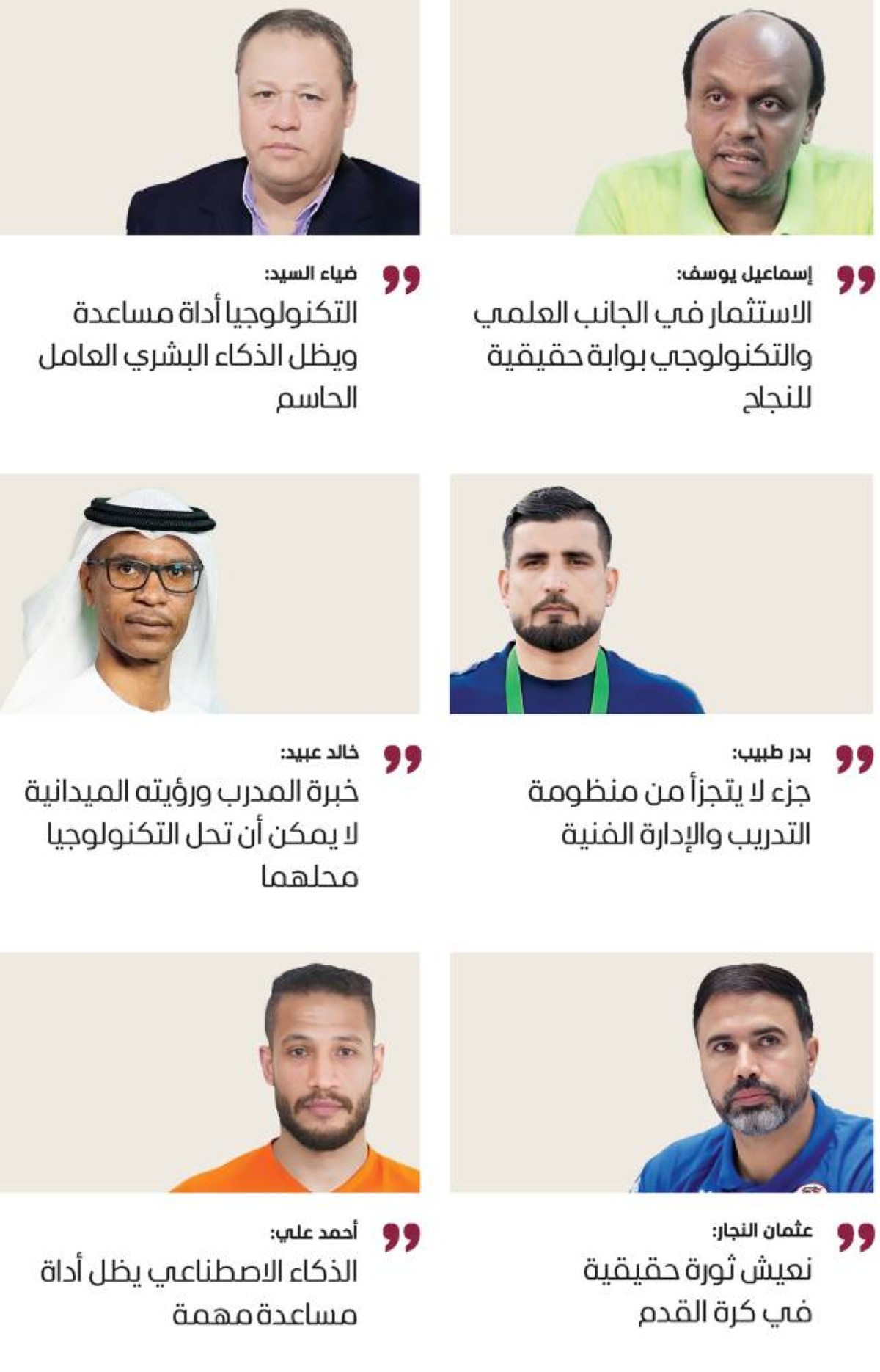 وأضاف: «رغم الدور المتصاعد للتكنولوجيا في كرة القدم، فإن خبرة المدرب ورؤيته الفنية، تظل عنصراً أساسياً لا يمكن الاستغناء عنه.. فالفارق الحقيقي في النتائج يصنعه التوازن بين ما توفره أدوات الذكاء الاصطناعي، وما يقدمه الإنسان من فهم وتحليل ميداني دقيق».