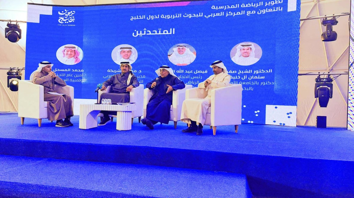 جانب من إحدى الجلسات النقاشية لديوان الخليج عن الرياضة المدرسية