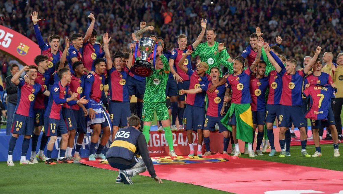 وكان برشلونة حسم تتويجه بالفعل بلقب الدوري إثر فوزه 2-صفر على إسبانيول يوم الخميس الماضي، إذ تفوق على ريال مدريد صاحب المركز الثاني بفارق لا يمكن تعويضه خلال آخر جولتين بالموسم.