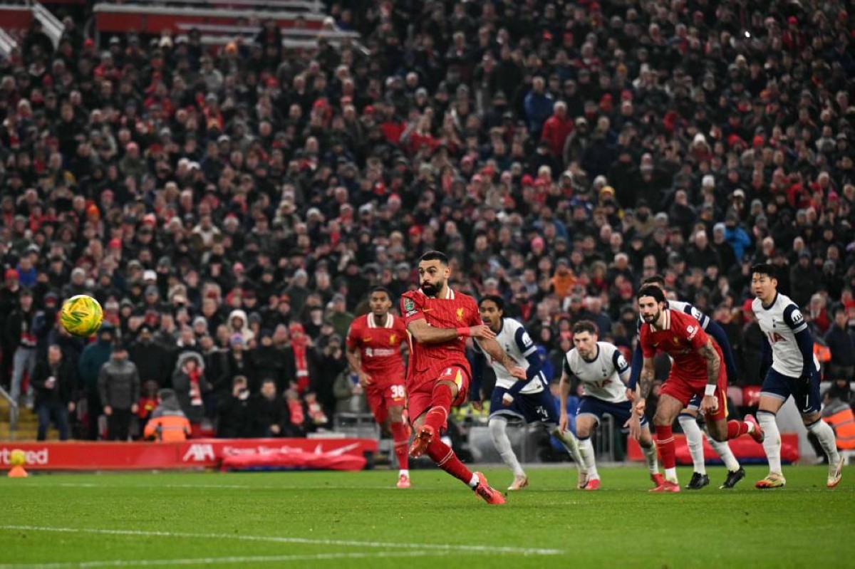سجل النجم المصري محمد صلاح هدفه السادس والعشرين هذا الموسم من ركلة جزاء ليقود ليفربول نحو استاد ويمبلي وفرصة تحقيق المزيد من الإنجازات التاريخية في كأس كاراباو.