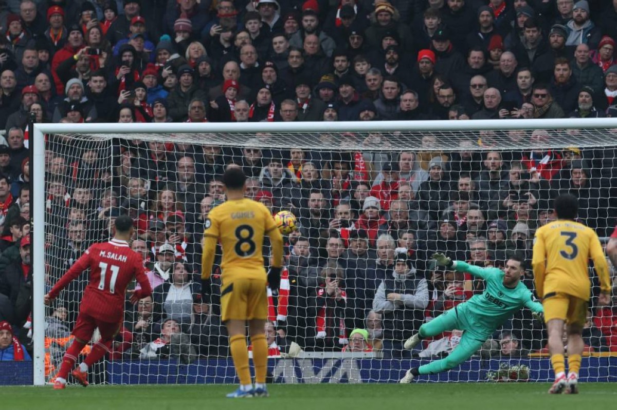 سجل النجم المصري محمد صلاح ثاني أهداف ليفربول ضد وولفرهامبتون في الدقيقة 35، من ركلة جزاء، في اللقاء الذي انتهى بفوز الريدز بصعوبة بهدفين مقابل هدف، ليصل الملك المصري إلى 101 هدف على ملعب أنفيلد، مواصلاً تحقيق الأرقام التاريخية في الدوري الإنجليزي لكرة القدم.