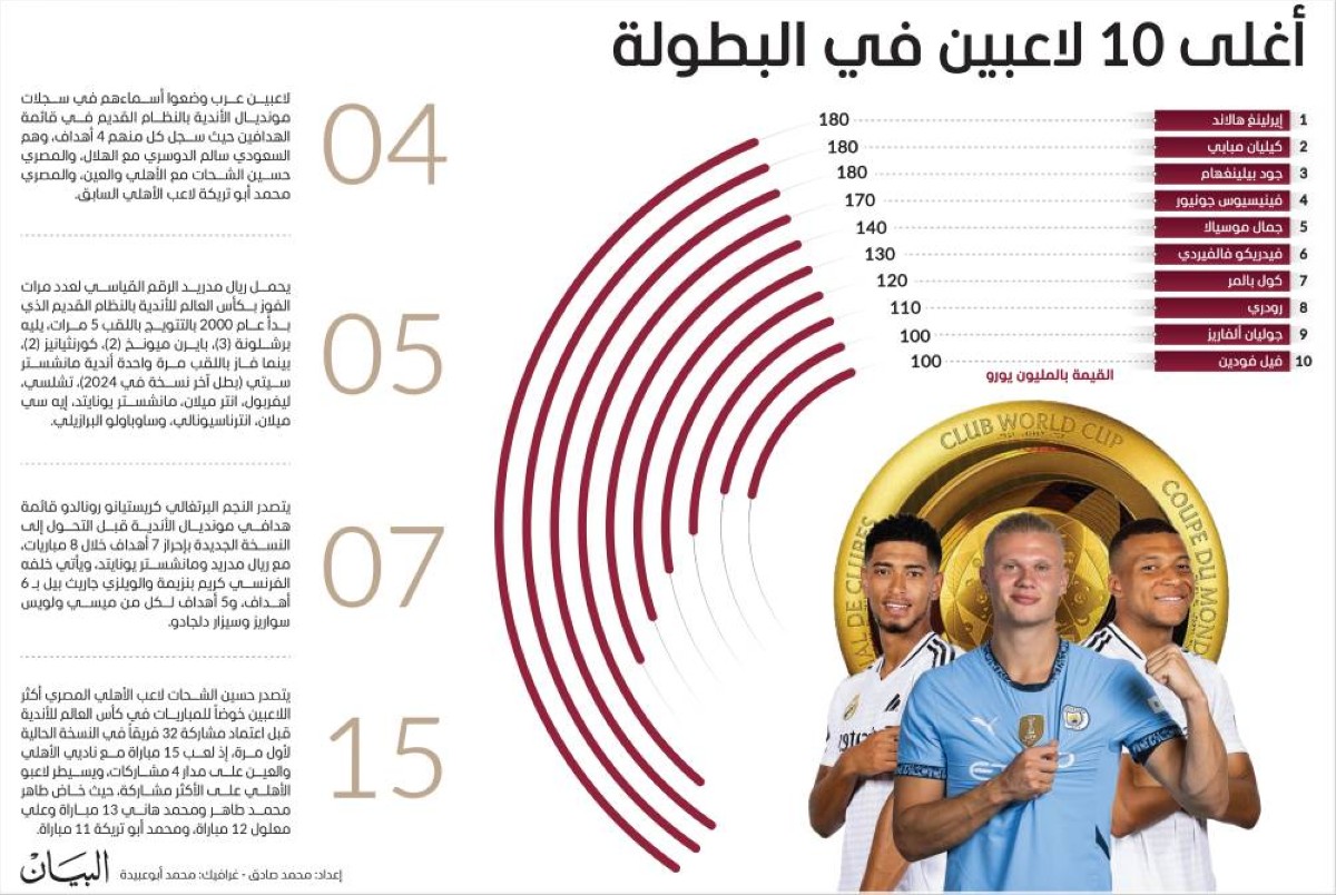 مبابي وهالاند وبيلينغهام أغلى اللاعبين