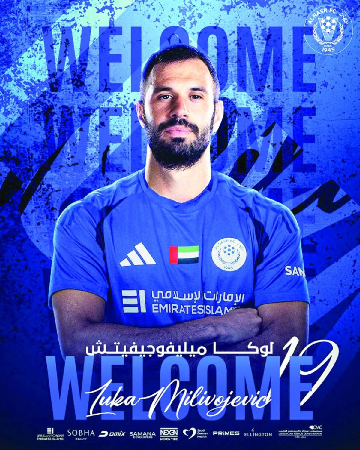 أعلنت شركة النصر لكرة القدم عن تعاقدها مع اللاعب الدولي الصربي لوكا ميليفوجيفيتش لموسم واحد، قادماً من نادي شباب الأهلي، الذي لعب له لمدة موسمين، وشارك معه في 41 مباراة في مسابقة الدوري وسجل 4 أهداف.