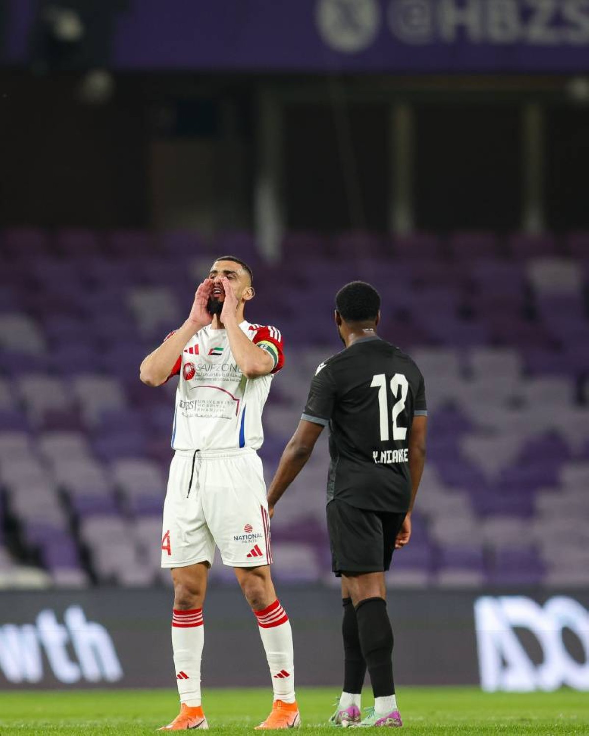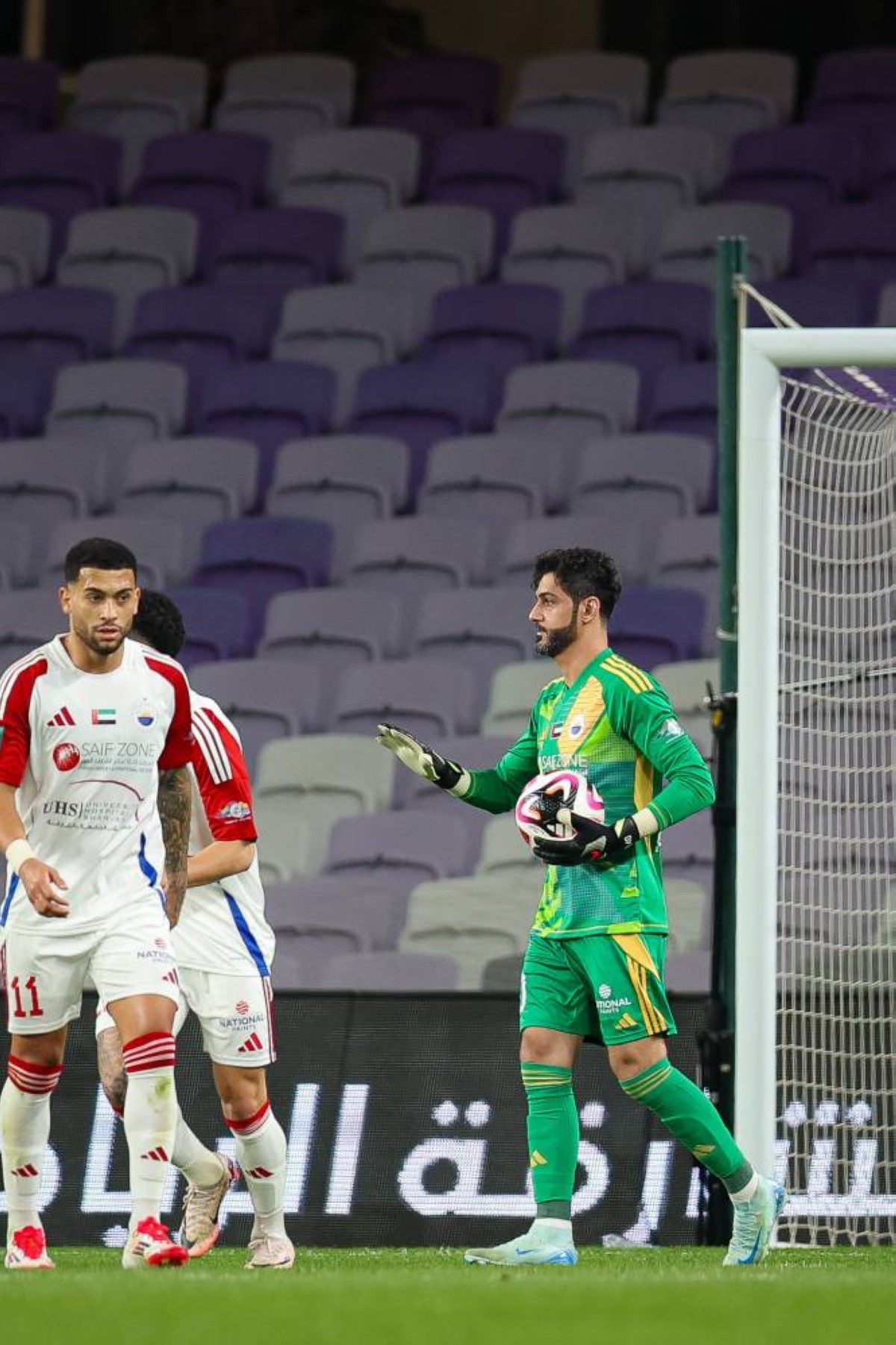 وقبل عشر دقائق من انتهاء الشوط الأول، تنفس جمهور بني ياس الصعداء بعدما أطاح البرازيلي جويلهو بالكرة فوق العارضة وهو في مواجهة المرمى داخل منطقة العمليات. وبعد دقيقة واحدة، عاد اللاعب نفسه في محاولة منه للتعويض، ليسدد كرة خادعة من خارج المنطقة تألق حارس السماوي في التصدي لها وحولها إلى ركلة زاوية لم يستفد منها لاعبو الشارقة. ولم تشهد الدقائق المتبقية أحداثاً تُذكر، لينتهي الشوط الأول بالتعادل السلبي.