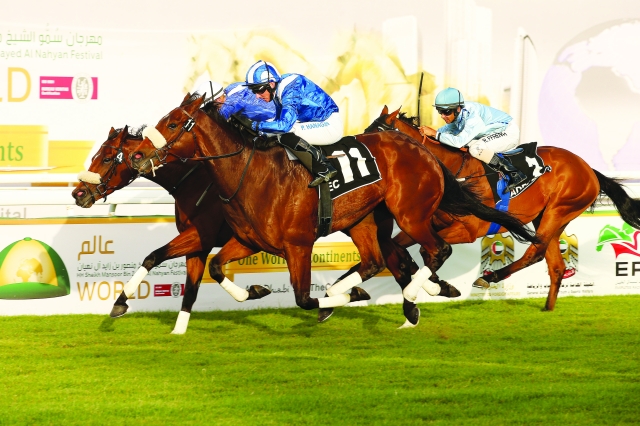 فاز الجواد«خصوصي» لسمو الشيخ حمدان بن راشد آل مكتوم بقيادة الفارس بول هاناجان وإشراف المدرب القدير علي راشد الرايحي، بلقب سباق بطولة أبوظبي للخيول المهجنة الأصيلة للفئة الثالثة الذي شارك فيه 12 خيلاً لمسافة 2200 متر وإجمالي جوائزه المالية 400 ألف درهم..