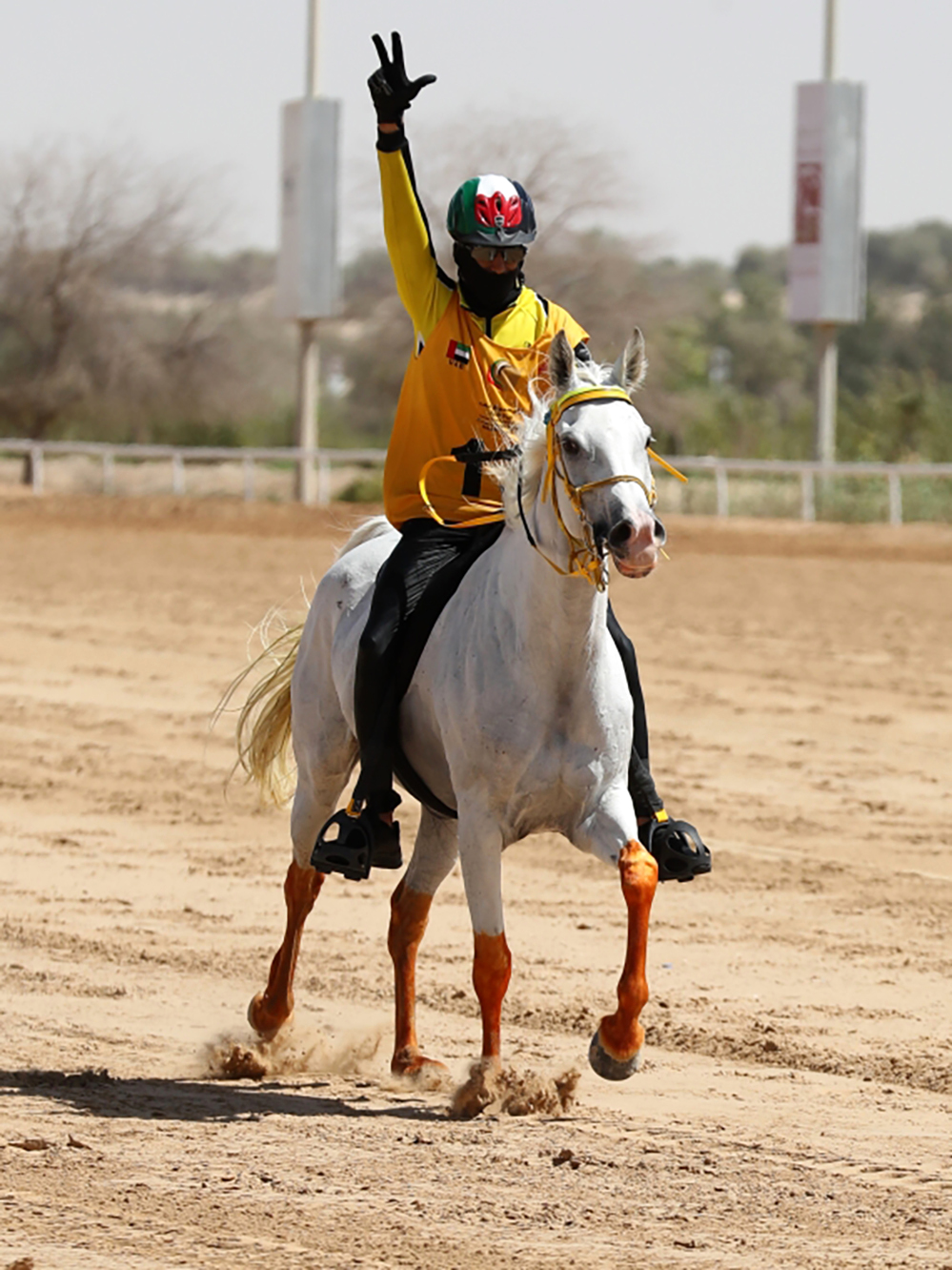 توج الفارس أحمد صالح الشحي بطلاً لسباق الإسطبلات الخاصة لمسافة 119 كلم والذي أقيم أمس، ضمن فعاليات اليوم الثاني لمهرجان سمو ولي عهد دبي للقدرة في مدينة دبي الدولية للقدرة بسيح السلم، بمشاركة 204 فرسان وفارسات من مختلف الإسطبلات وأندية الفروسية في الدولة.