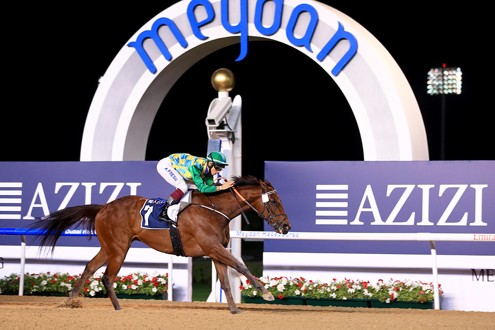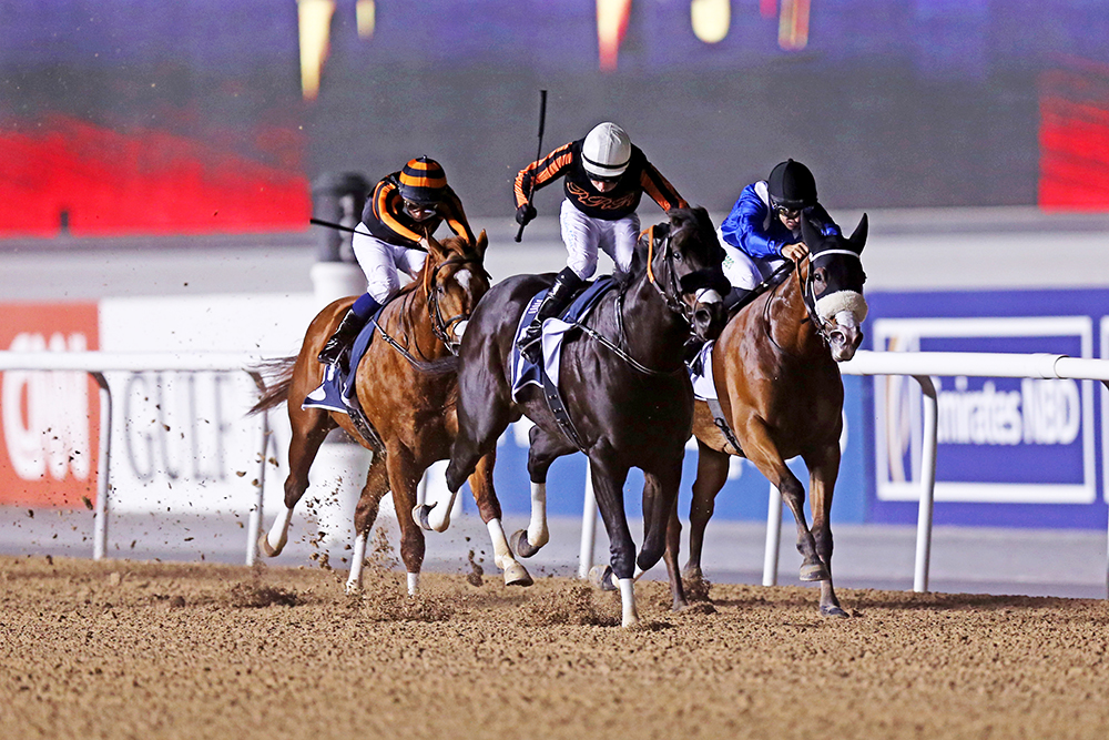 اقتنص «إكيلاتيرال» لمالكته فترياني هاي لقب الشوط السابع والختامي للأمسية «بطولة دبي للسرعة - داش» لمسافة 1000 متر على المضمار العشبي برعاية «أورا من عزيزي».
