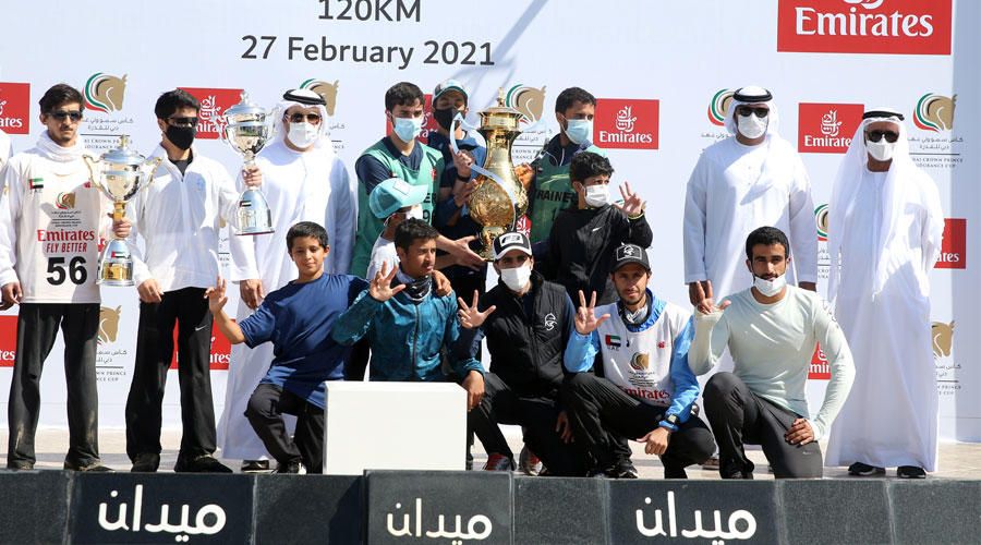 وعقب ختام السباق، قام اللواء الدكتور أحمد ناصر الريسي رئيس اتحاد الإمارات للفروسية، والدكتور غانم الهاجري الأمين العام لاتحاد الفروسية و راشد المكتوم مدير دعم المبيعات في الدولة بطيران الإمارات، ومحمد عيسى العضب المدير العام لنادي دبي للفروسية، بتتويج البطل عبدالله العامري بكأس سمو ولي عهد دبي للقدرة، وتسليم سهيل الغيلاني كأس المركز الثاني، والفارس حمدان المري كأس المركز الثالث، كما حصل صاحب المركز الأول على جائزة نقدية بقيمة 200,000 درهم، ونال الفائز بالمركز الثاني 180,000 درهم، والمركز الثالث 160,000 درهم، والمركز الرابع 50,000 درهم، والمركز الخامس 35,000 درهم، بينما تم منح الفائزين من المركز السادس حتى المركز الـ 30 جائزة نقدية بقيمة 30,000 درهم.