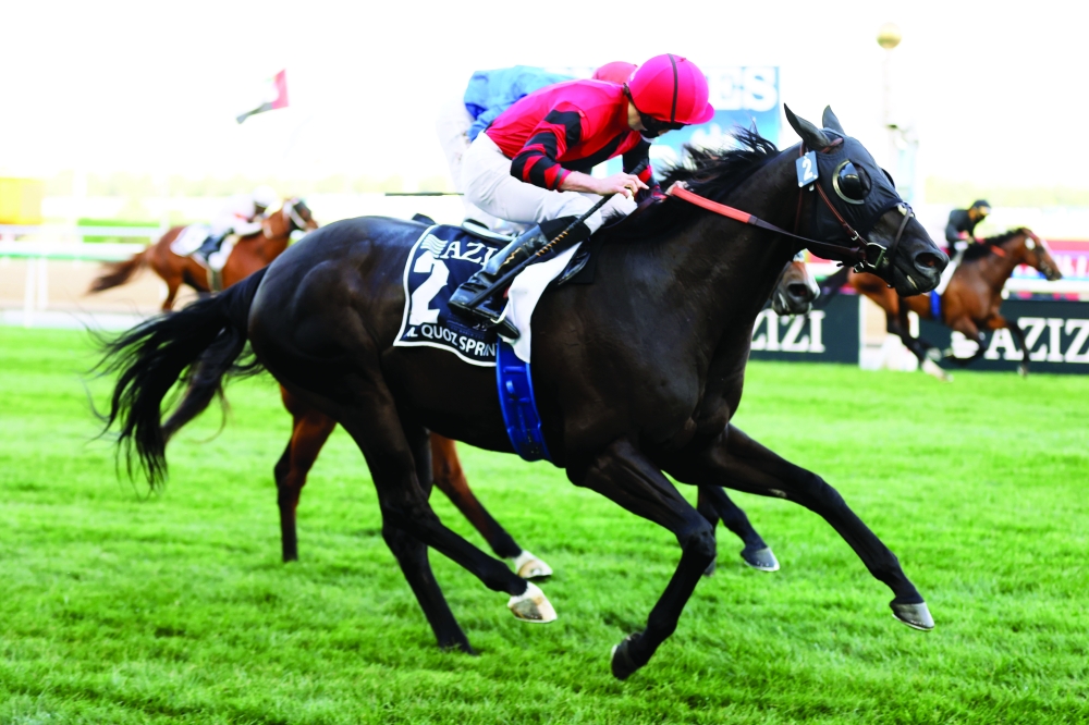 حقق الجواد الأمريكي «إكسترافاغانت كيد» لـ «دي إي آر آر أس – ديفيد إيه روس» لقب الشوط الرابع «القوز للسرعة» لمسافة 1200 متر «الفئة الأولى» على المضمار العشبي برعاية «عزيزي للتطوير العقاري» والبالغة قيمة جوائزه مليون دولار، بقيادة الفارس ريان مور وإشراف المدرب بريندان وولش مسجلاً زمناً قدره 1.09.26 دقيقة وبفارق نصف طول عن «فاينال سونج» لجودلفين بقيادة الفارس كريستوف سوميلون وإشراف المدرب سعيد بن سرور.