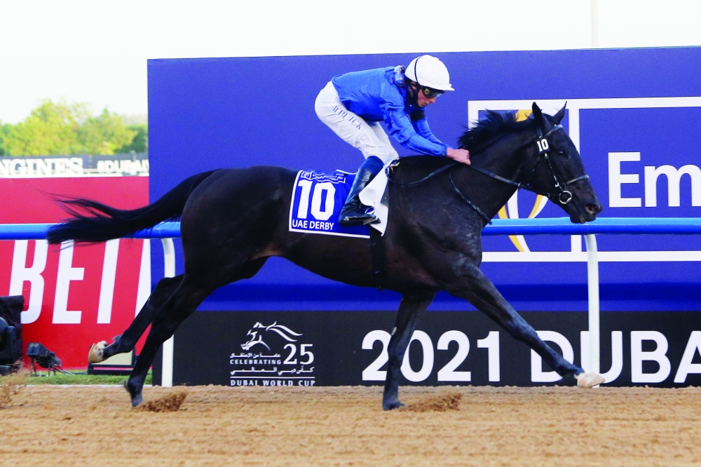 توج «ريبيلز رومانس» لجودلفين، بلقب الشوط الخامس «ديربي الإمارات» لمسافة 1900 متر «الفئة الثانية»، على المضمار الرملي، برعاية «بنك الإمارات دبي الوطني»، والبالغة قيمة جوائزه 750 ألف دولار، بقيادة الفارس وليام بويك وإشراف المدرب شارلي آبلبي، مسجلاً زمناً قدره 1.56.28 دقيقة، وبفارق 5 أطوال ونصف الطول عن «بانادول»، لسمو الشيخ حمدان بن محمد بن راشد آل مكتوم، بقيادة الفارس مايكل بارزالونا وإشراف المدرب سالم بن غدير، وجاء في المركز الثالث «نيو تريشر»، للأمير فيصل بن خالد بن عبد العزيز، بقيادة الفارس فرانكي ديتوري وإشراف المدرب جون غوسدن