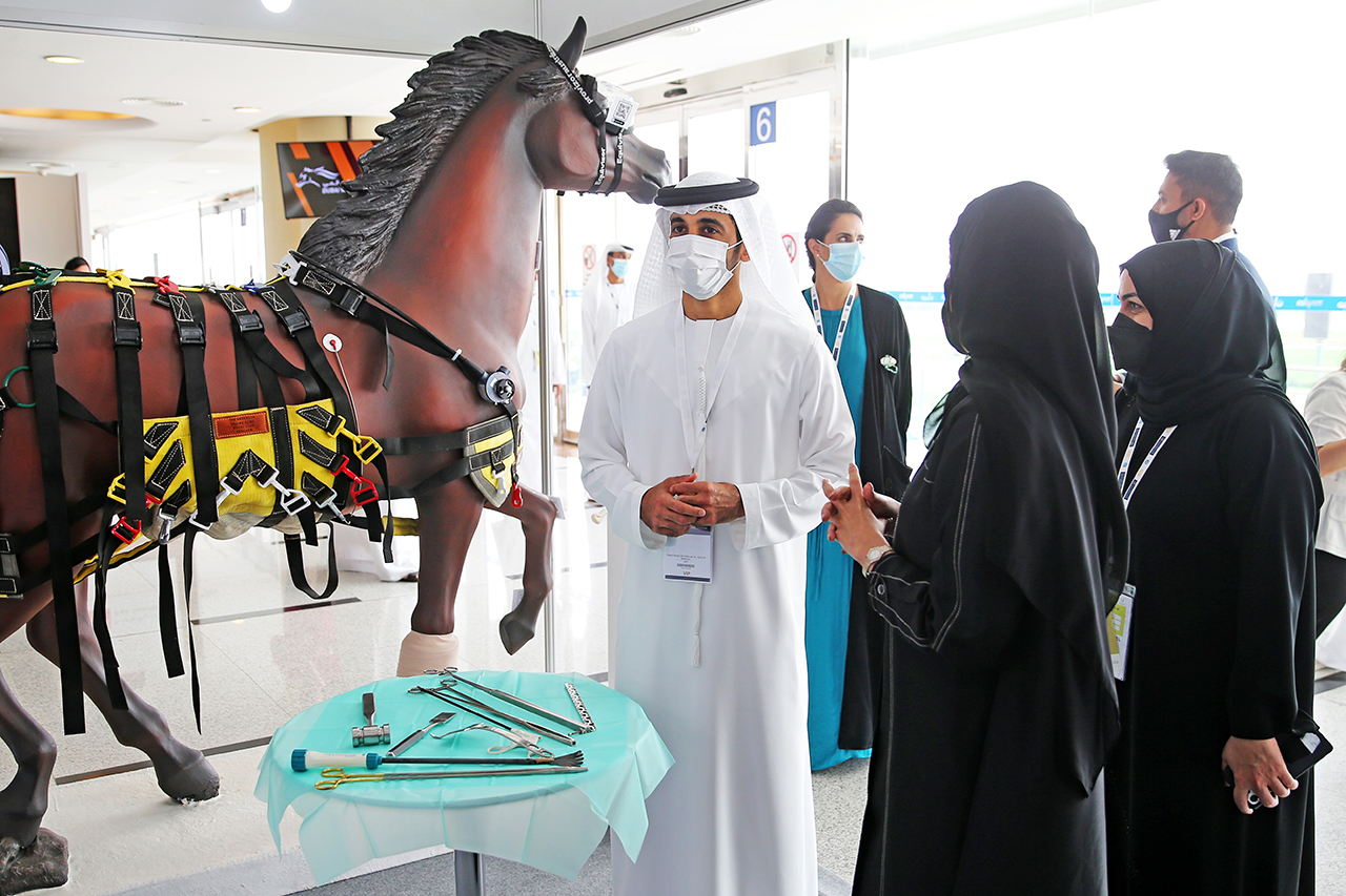 وتفقد الشيخ راشد بن دلموك آل مكتوم، الأجنحة المشاركة، والتي تعرض أحدث الابتكارات والتقنيات الخاصة بصناعة الخيل على مستوى المنطقة والعالم، بما في ذلك منتجات الأعلاف والتغذية ومنتجات الأرضيات والمستحضرات والخدمات البيطرية، وتقنيات الإسطبل، وغيرها من مختلف المكونات المرتبطة بالخيول.