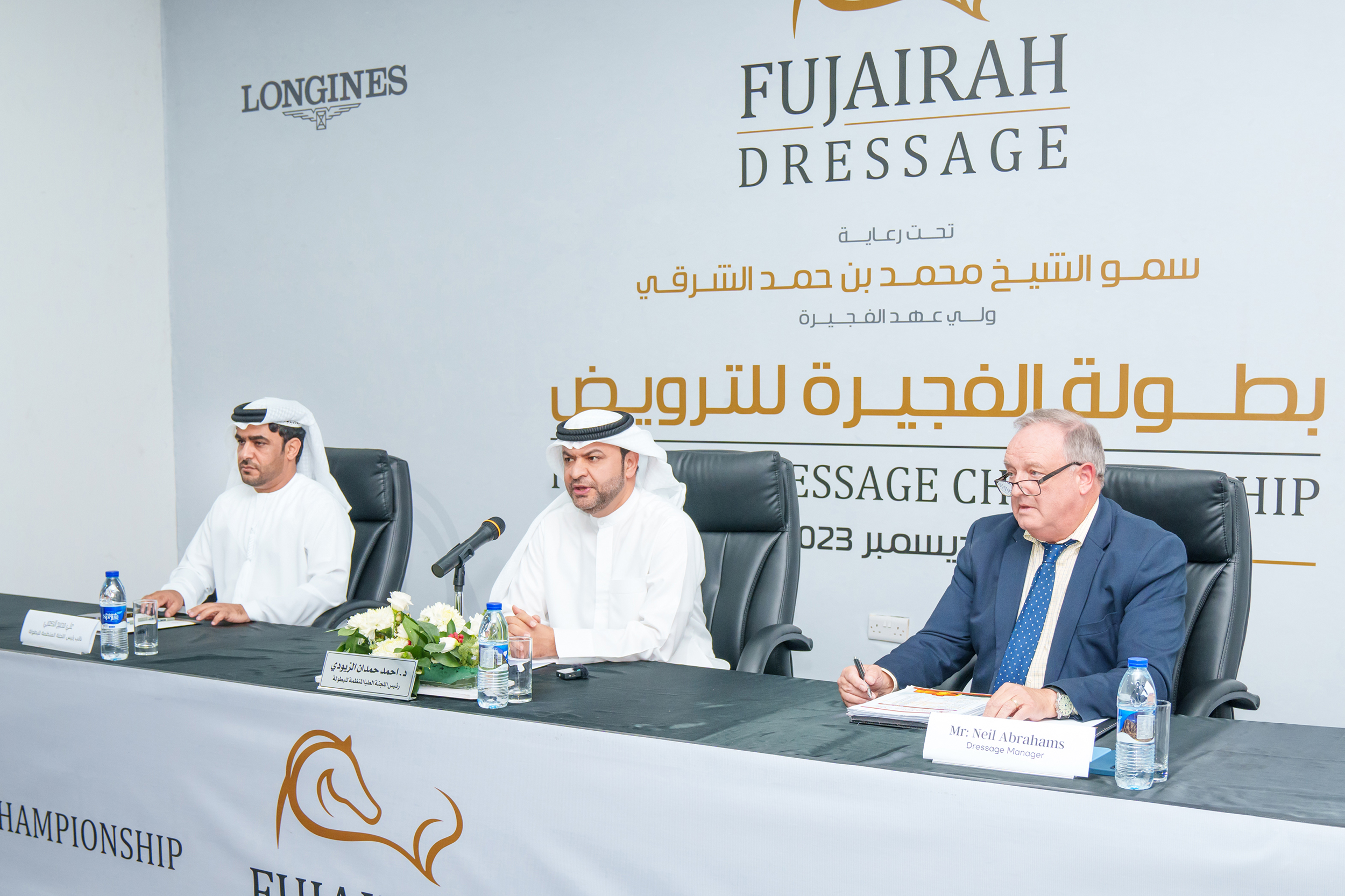جاء ذلك في مؤتمر صحافي عقد بحضور كل من الدكتور أحمد حمدان الزيودي، رئيس اللجنة المنظمة للبطولة، وعلي الكعبي، رئيس لجنة دريساج في اتحاد الإمارات للفروسية والسباق، مدير البطولة، ونيل ابراهام، عضو لجنة دريساج في اتحاد الإمارات للفروسية والسباق.