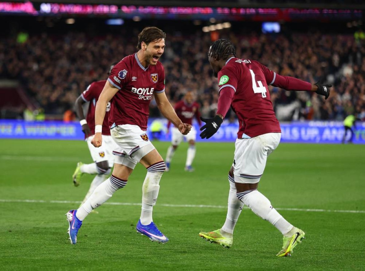 ويدين وست هام بفوزه إلى تألق الثنائي اليوناني كوستانتينوس مافروبانوس (42 و83) والأرجنتيني فالنتان كاستيانوس (66 و68).