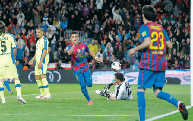 وسيطر الفريق الكاتالوني الذي نجح في تقليص الفارق عن ريال مدريد إلى نقطة واحدة على مدى شهر بعد ان كان 10 نقاط، على مجريات اللعب تماما وافتتح له التسجيل مهاجمه التشيلي اليكسيس سانشيز المنتقل إليه مطلع الموسم الحالي من اودينيزي الايطالي التسجيل إثر تلقيه كرة من الارجنتيني ليونيل ميسي فراوغ مدافعا على مشارف المنطقة واطلقها بعيدا عن متناول حارس خيتافي (13).